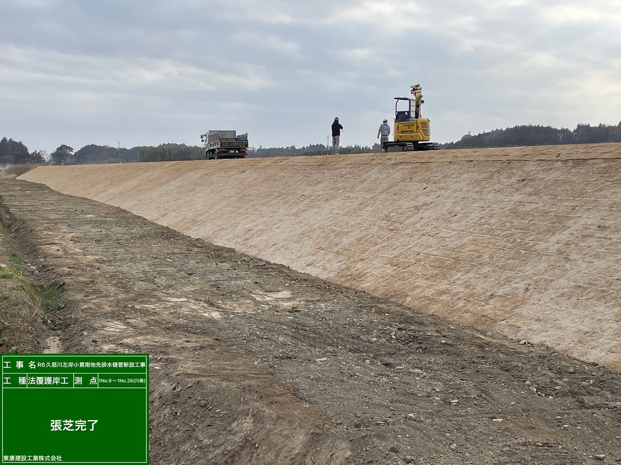 油圧ショベルが活躍した法面は、新たな作業に着手しています。