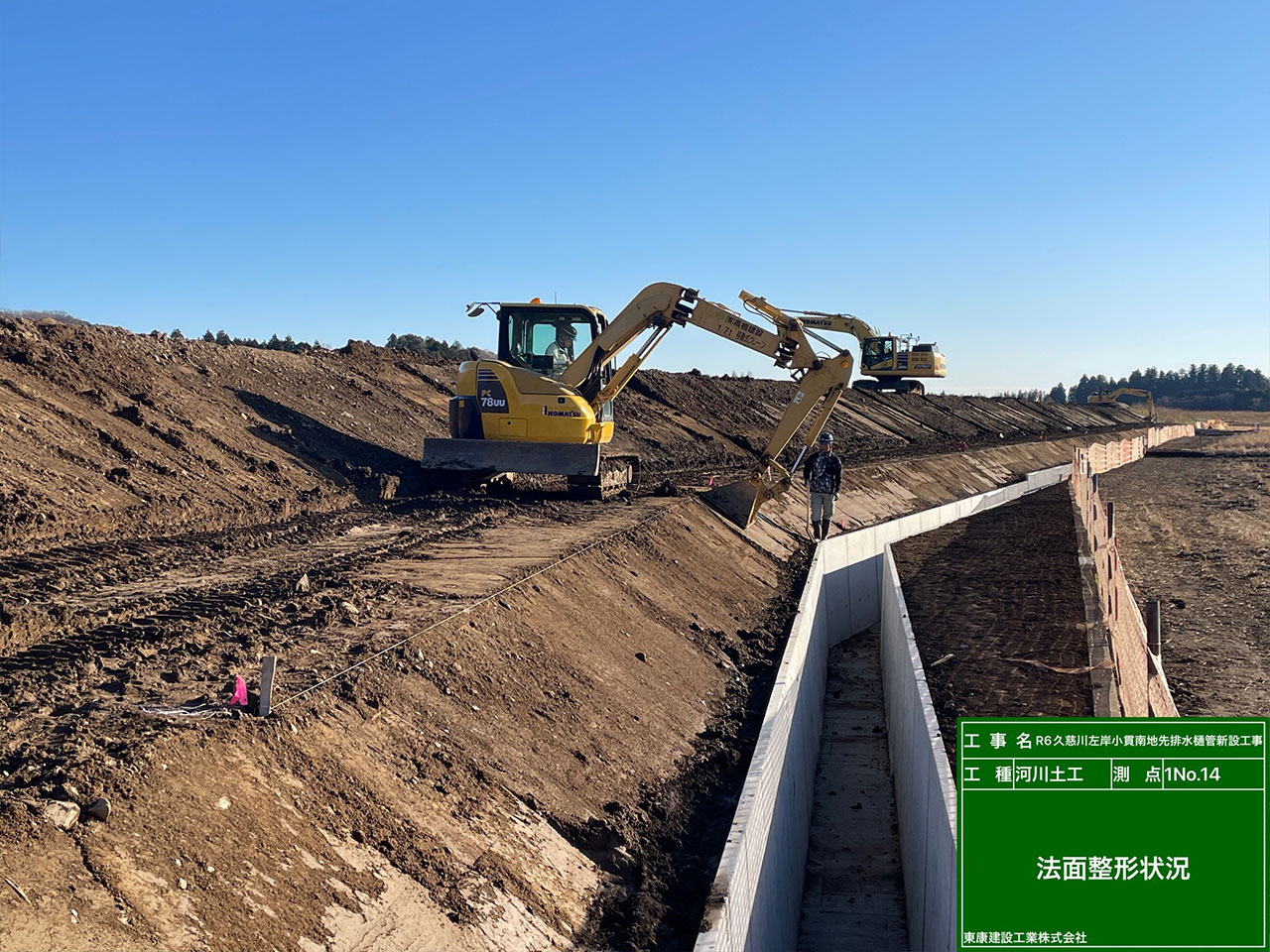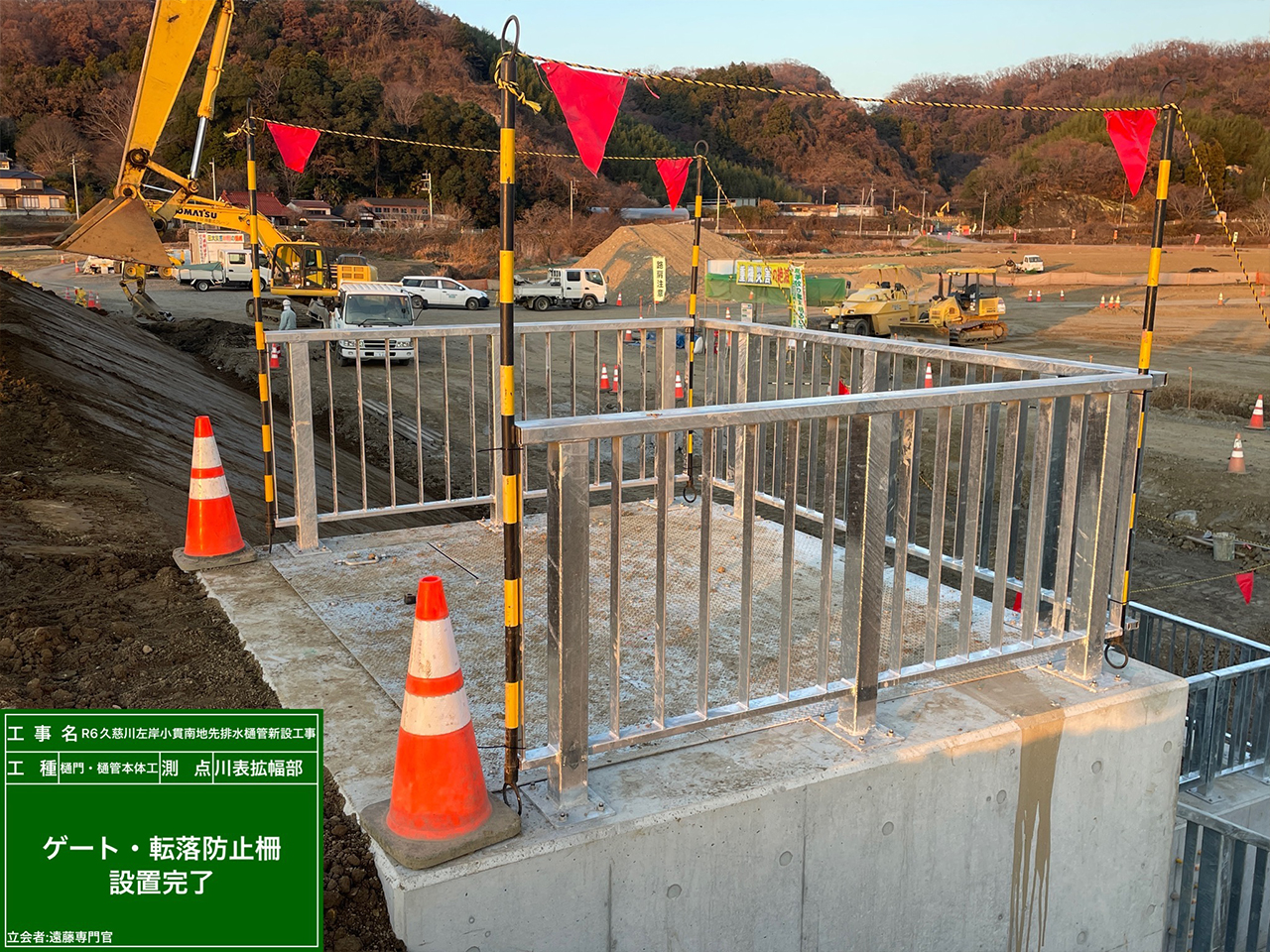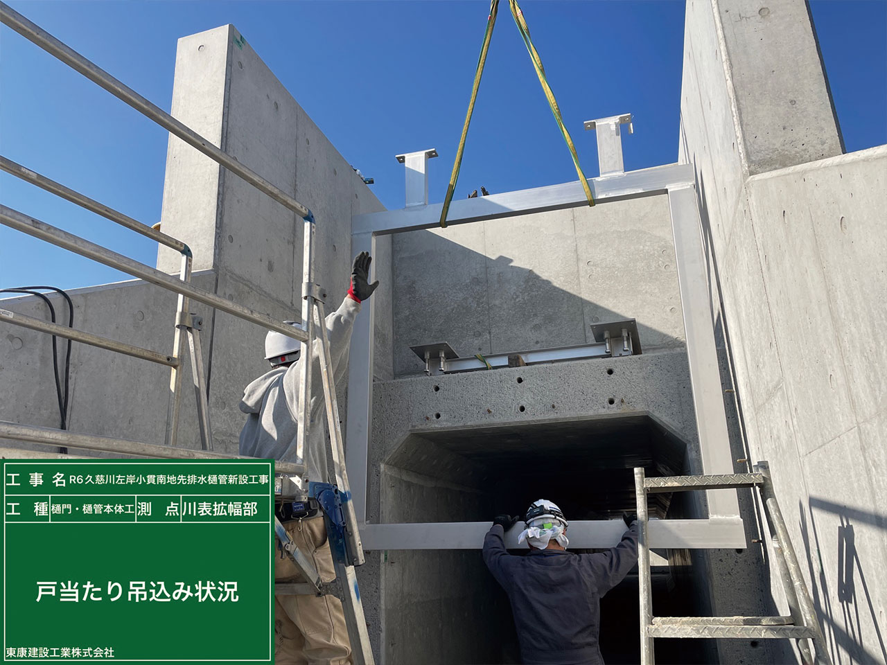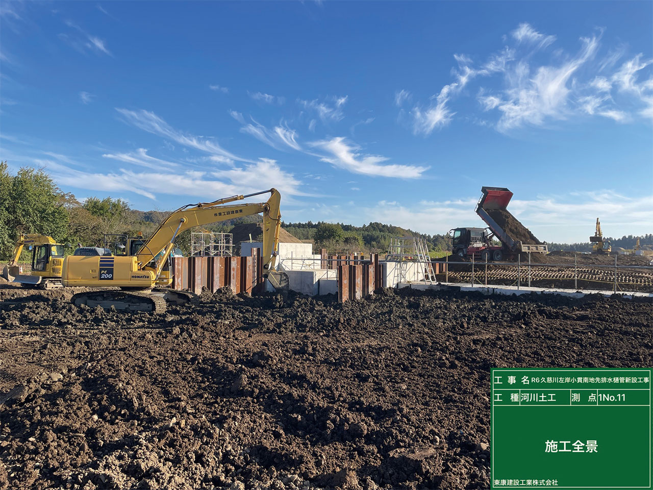 現在行っている仕事は、久慈川に樋管を新設する工事をしています。