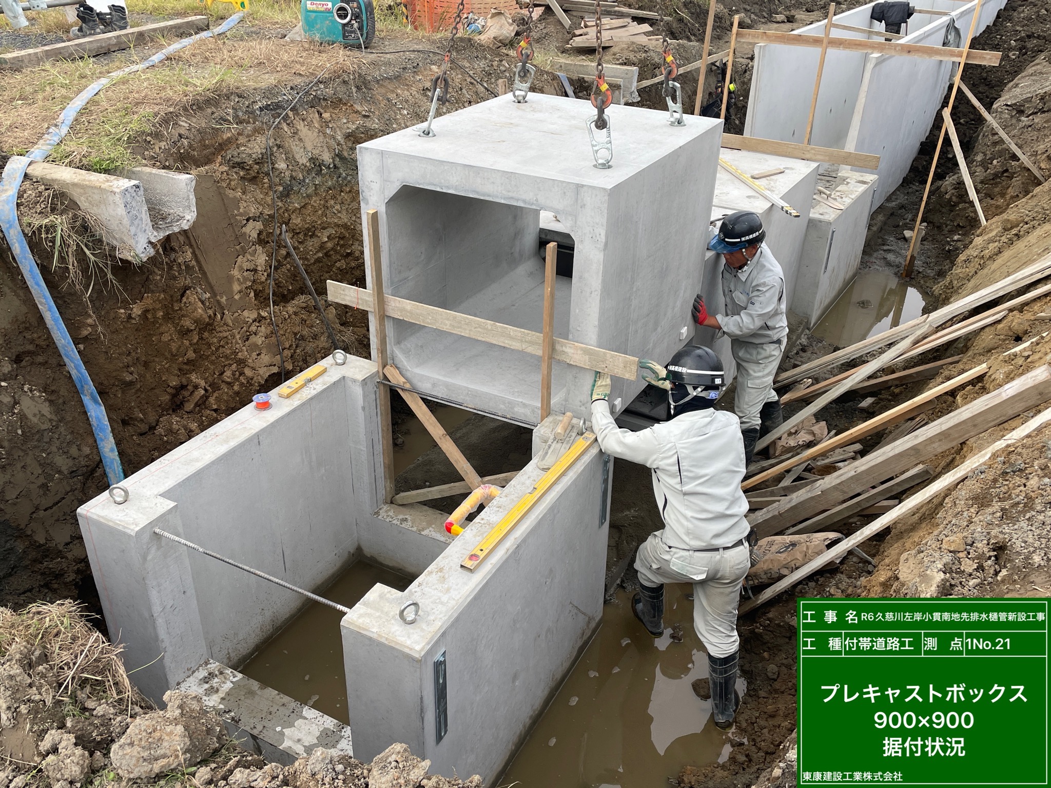 函渠と函渠の間隔は40mm。その隙間を確保しながら位置を調整しました。
