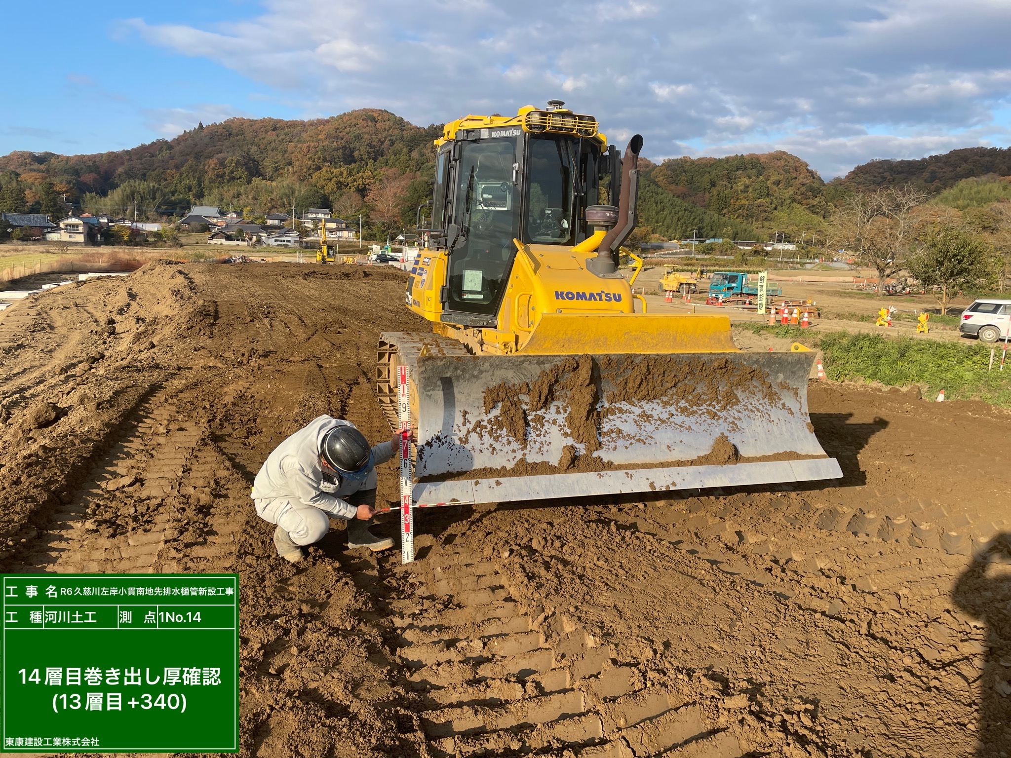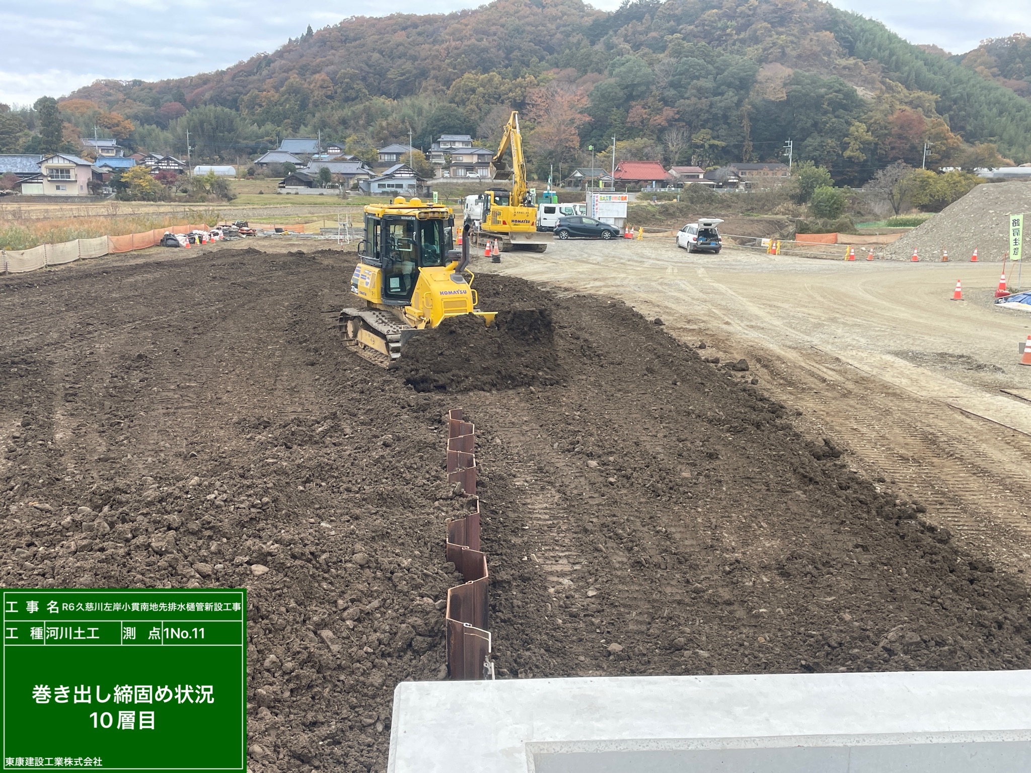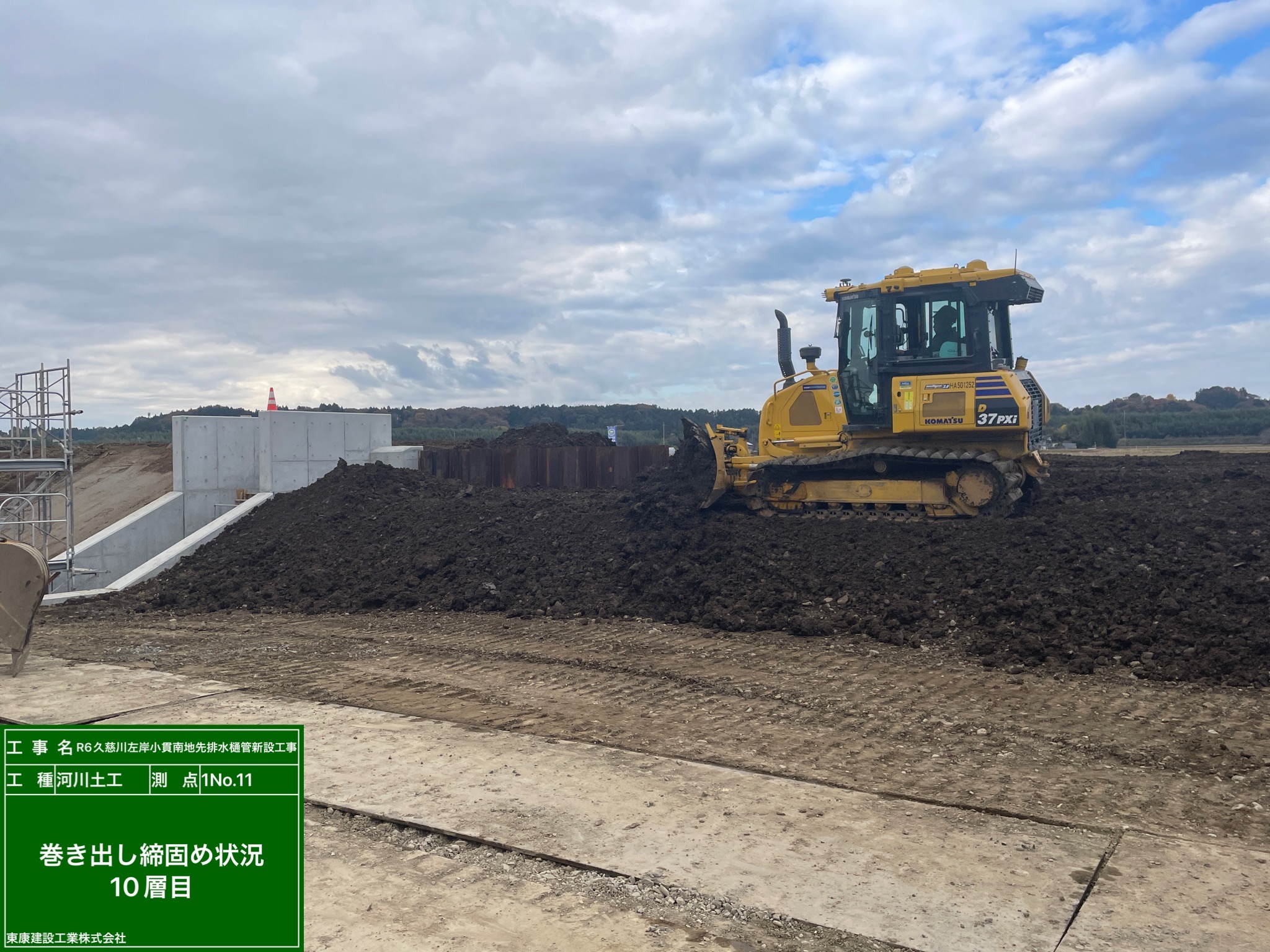 事前に試験施工をして決めた”巻き出し厚・締固め回数(層)”になるまで、同じ作業を繰り返していきます。