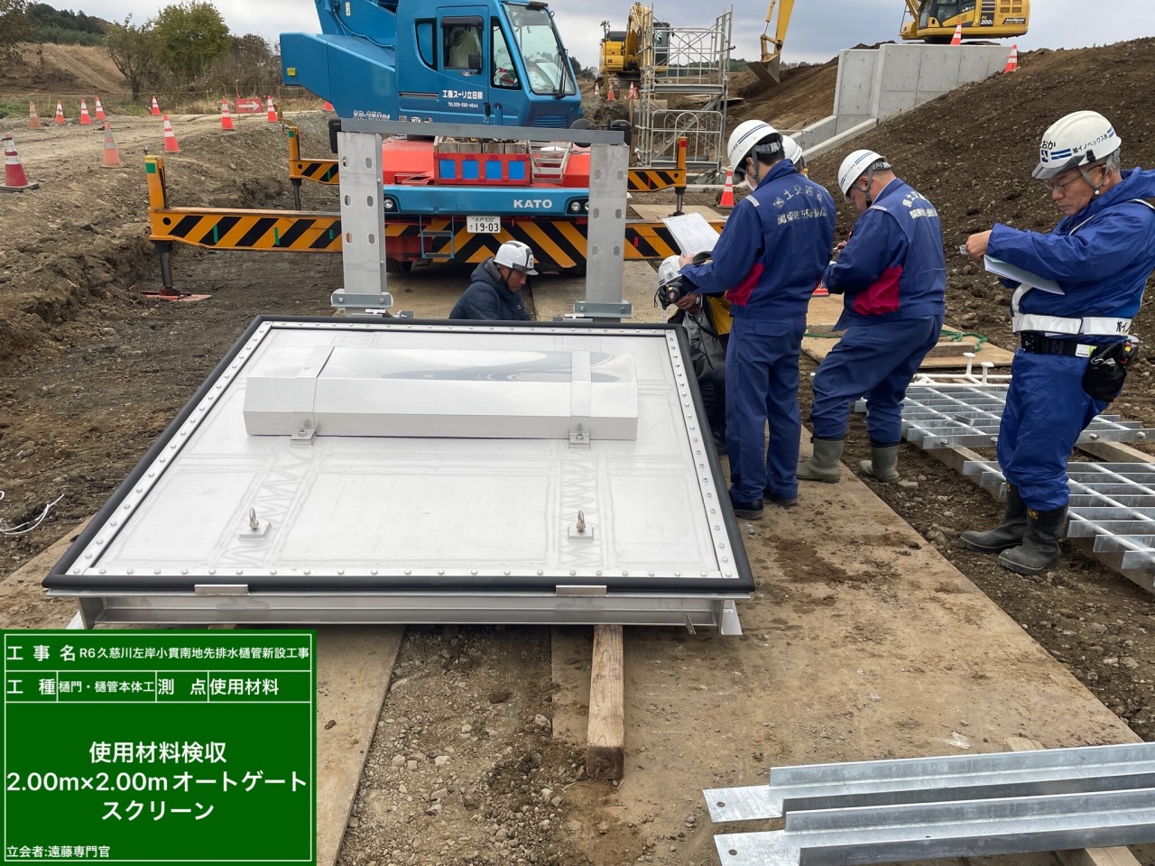 今回の現場の樋門には、提内外の水位変動に合わせて無重力で自動開閉するオートゲートを設置します。