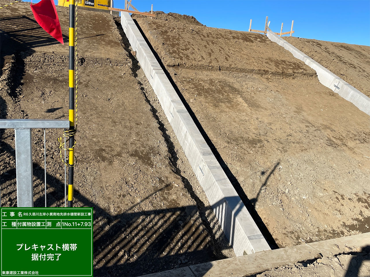 これから行う、コンクリート連節ブロックを敷設する前の”横帯コンクリート”の据付です!
