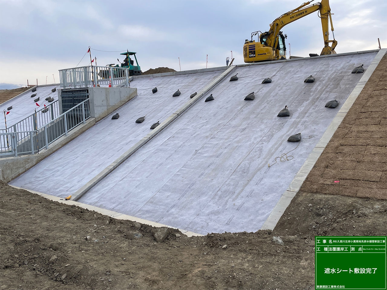 油圧ショベルが活躍した法面は、新たな作業に着手しています。