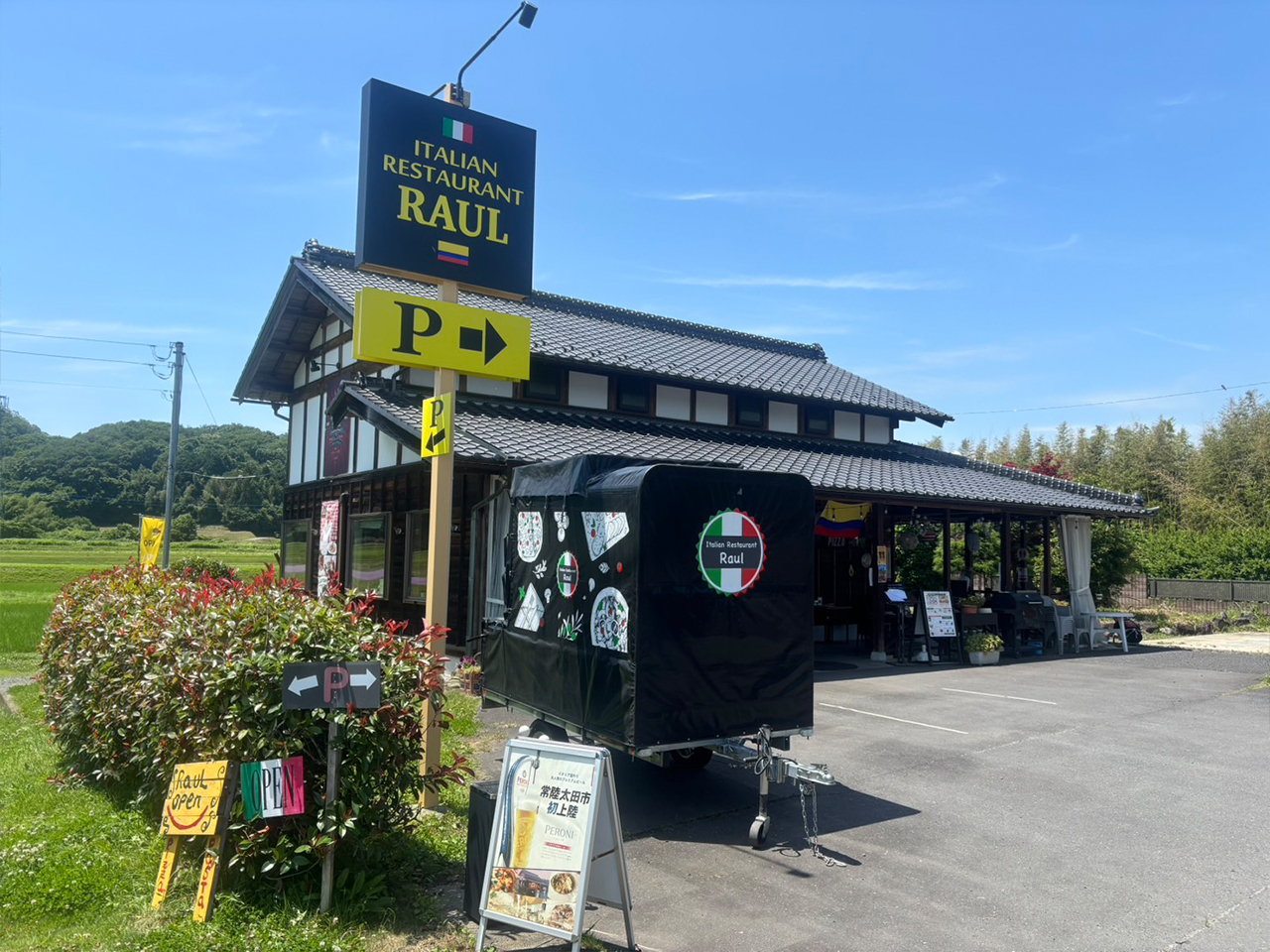 日本の伝統的な建物にイタリアを連想させる装飾が施された外観に目を奪われ『イタリアンレストラン楽生流(らうる)』さんへお邪魔しました。