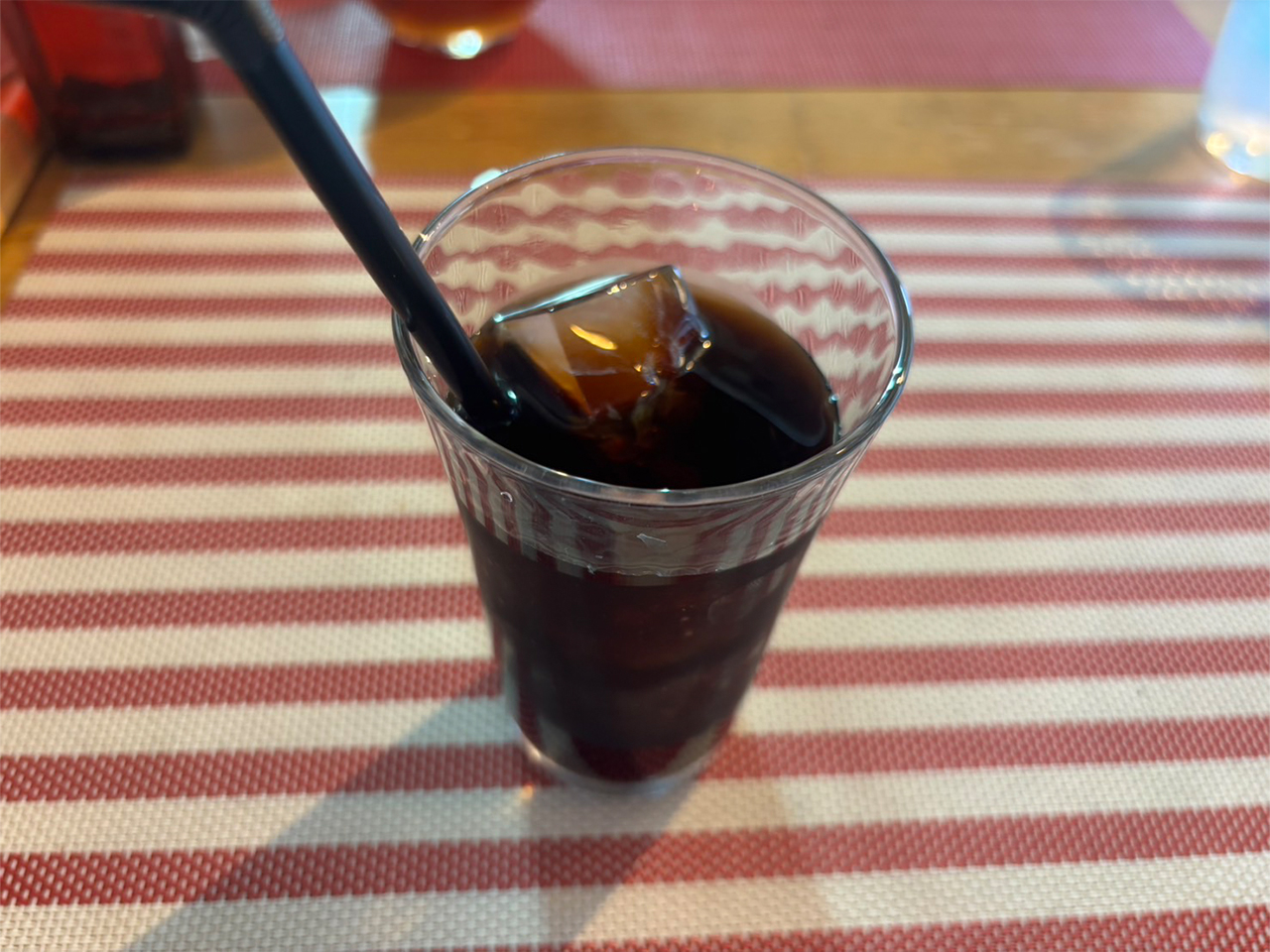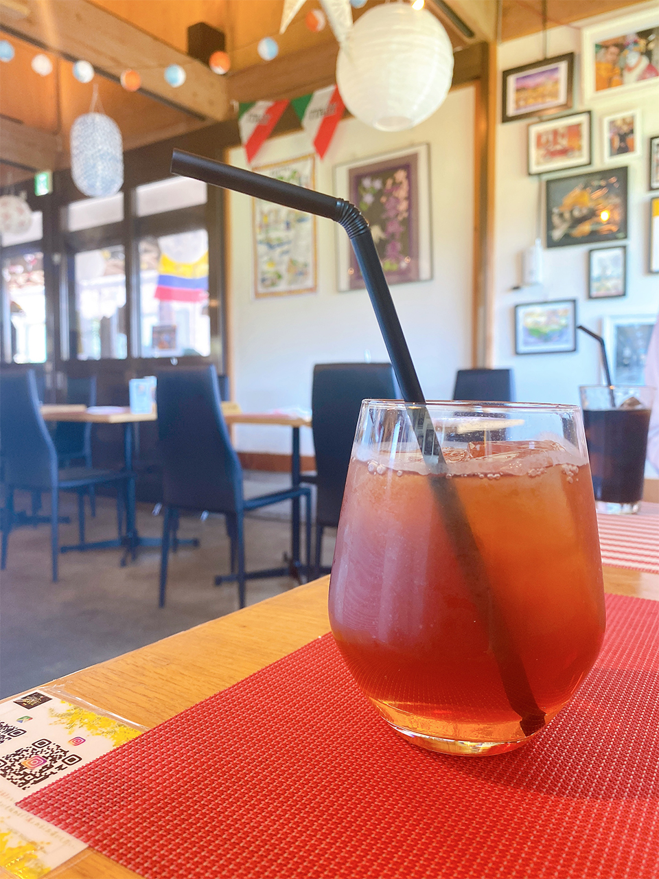一緒に頼んだピーチティーもシロップ混ぜ混ぜして、甘くて美味しい味わいでした。