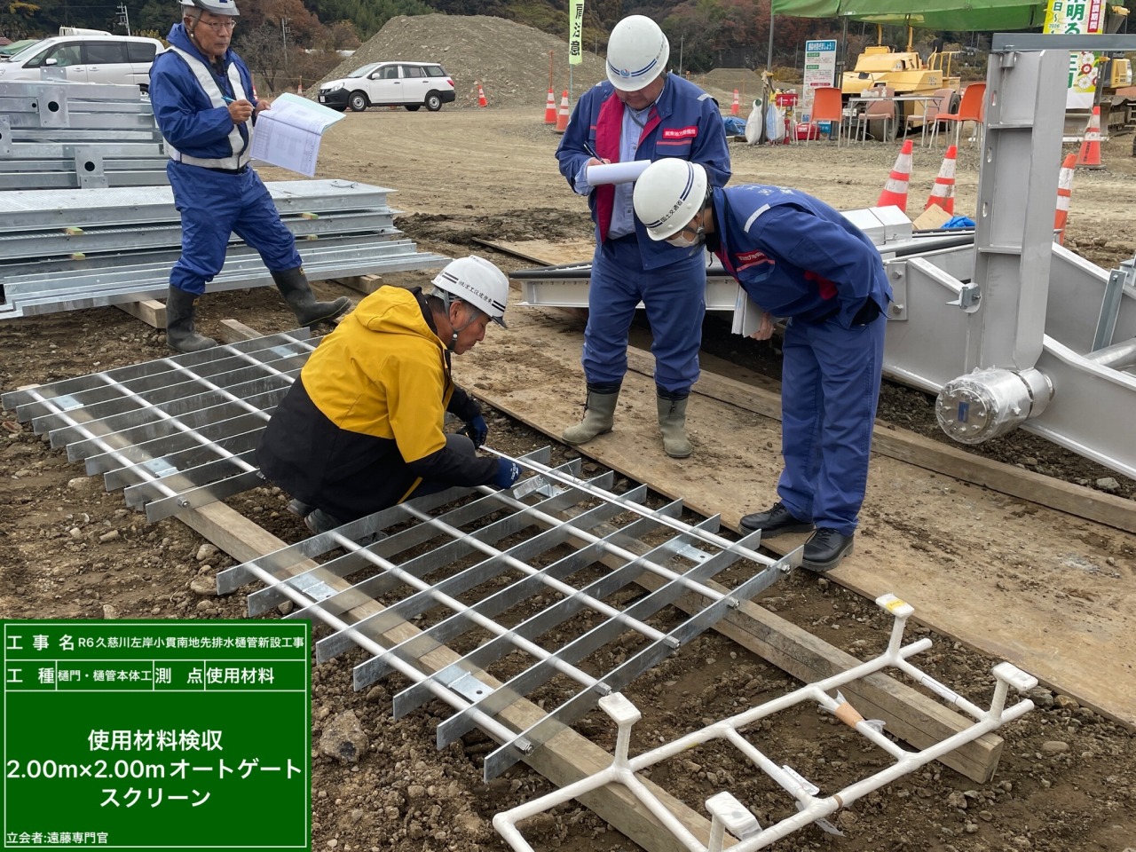 現場には、オートゲートやスクリーンなどの材料が搬入され、材料検収を行いました。