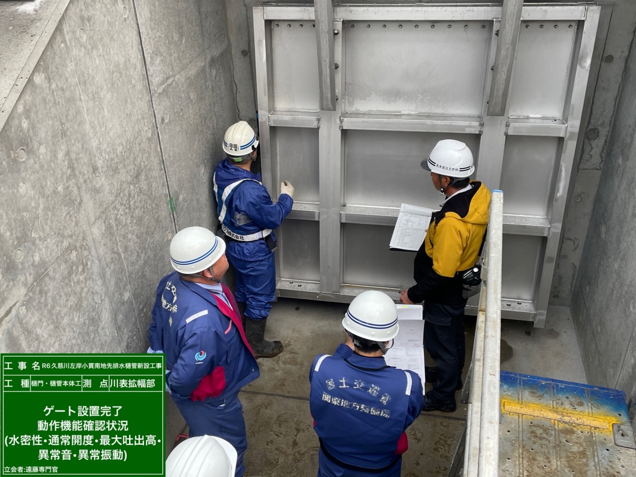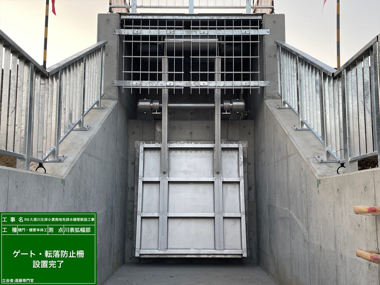 今回の現場の樋門には、提内外の水位変動に合わせて無重力で自動開閉するオートゲートを設置します。