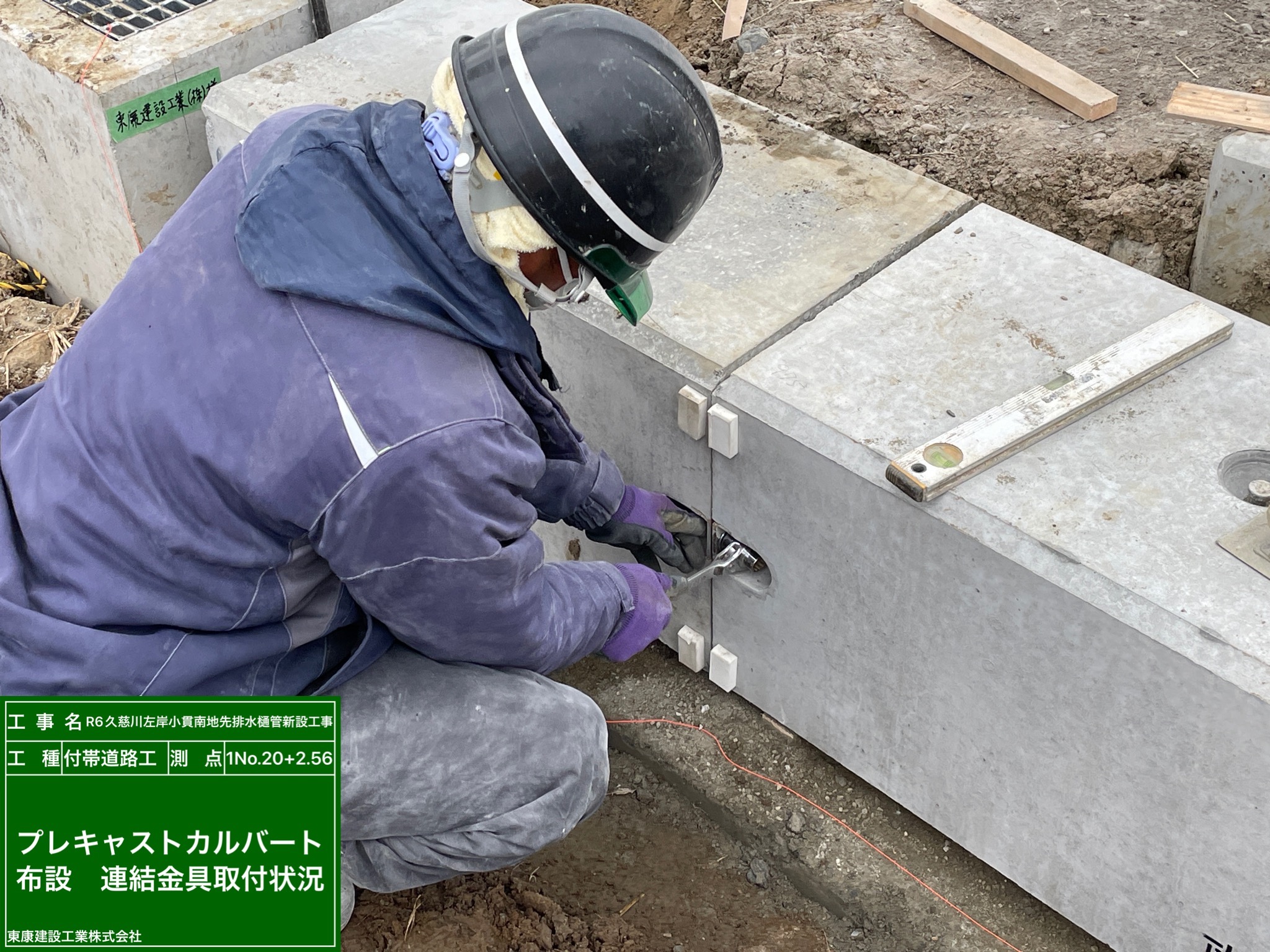 函渠と函渠の間隔は40mm。その隙間を確保しながら位置を調整しました。